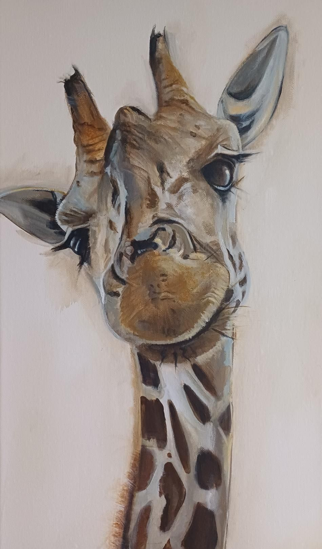 Thought it was time for another fun, goofy painting. I let my great niece name my giraffe as she loves them. Big thanks to photographer Missy Kaye for the fab image that inspired this creation.